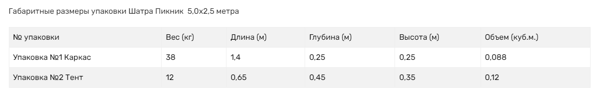 - Размер: 5,0х2,5 м.